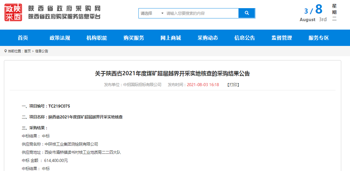測(cè)繪院成功中標(biāo)陜西省2021年度煤礦超層越界開(kāi)采實(shí)地核查項(xiàng)目 -
